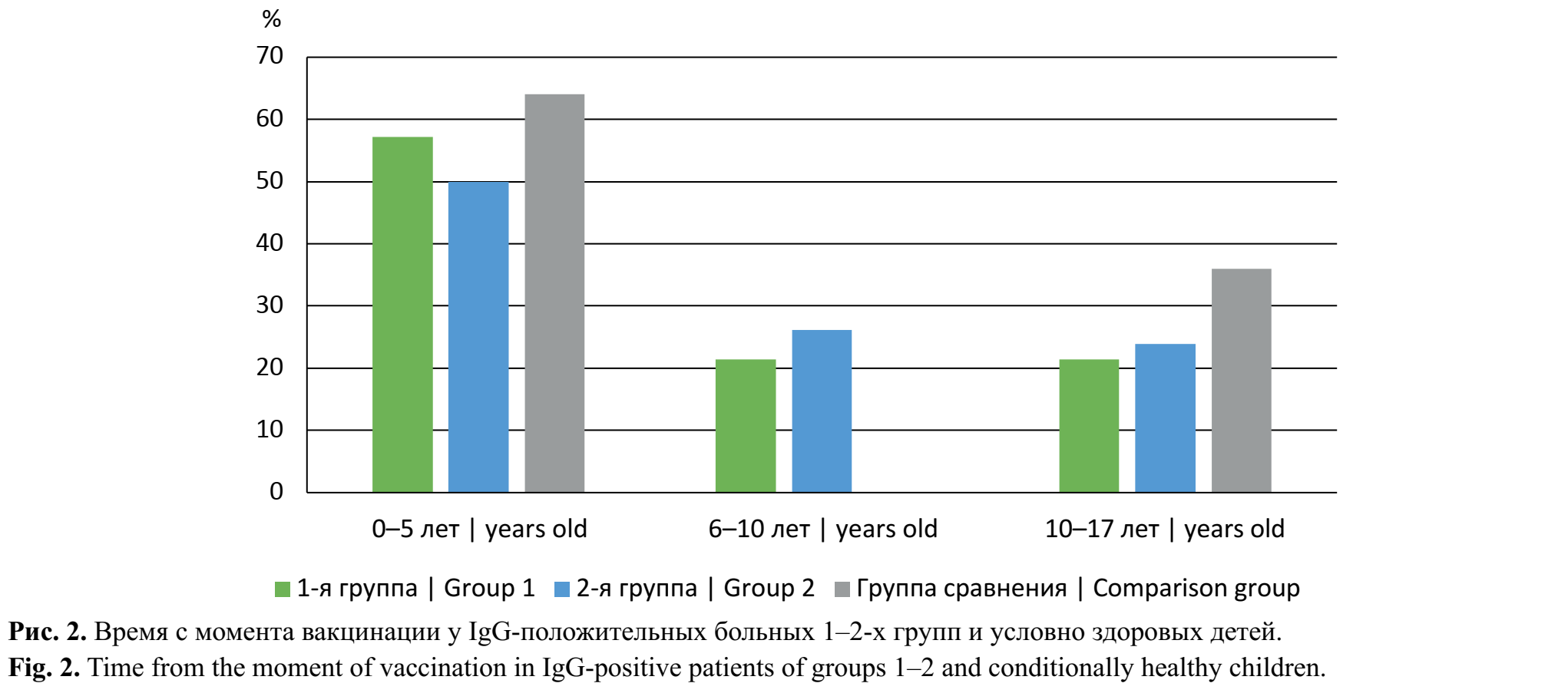 Высоко положительный уровень специфических антител определялся у больных с ХБП 5 стадии, при этом только у пациентов с неиммунной нефропатией — у 10,2% детей, у всех вакцинация была проведена не позднее 2 лет к моменту исследования.